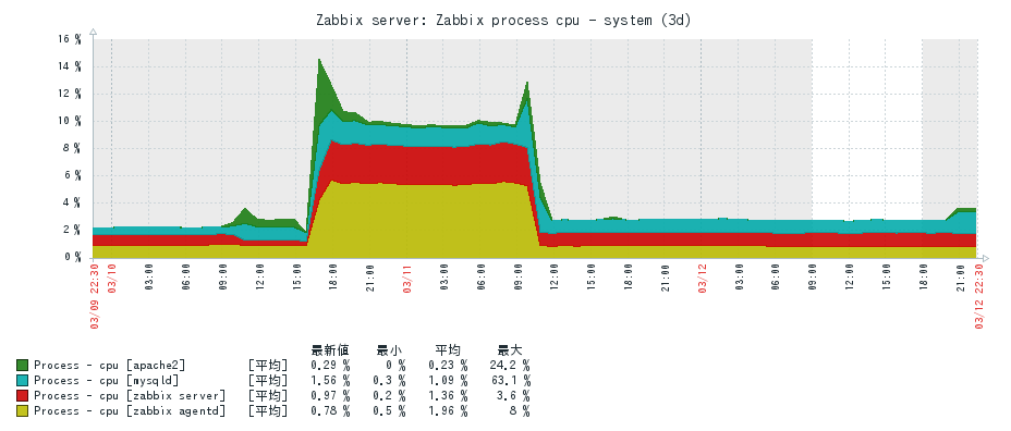 特にCPUやメモリなんかはグラフ化されてどの時間帯でどれだけ負荷がかかったのか一目でわかるんだ